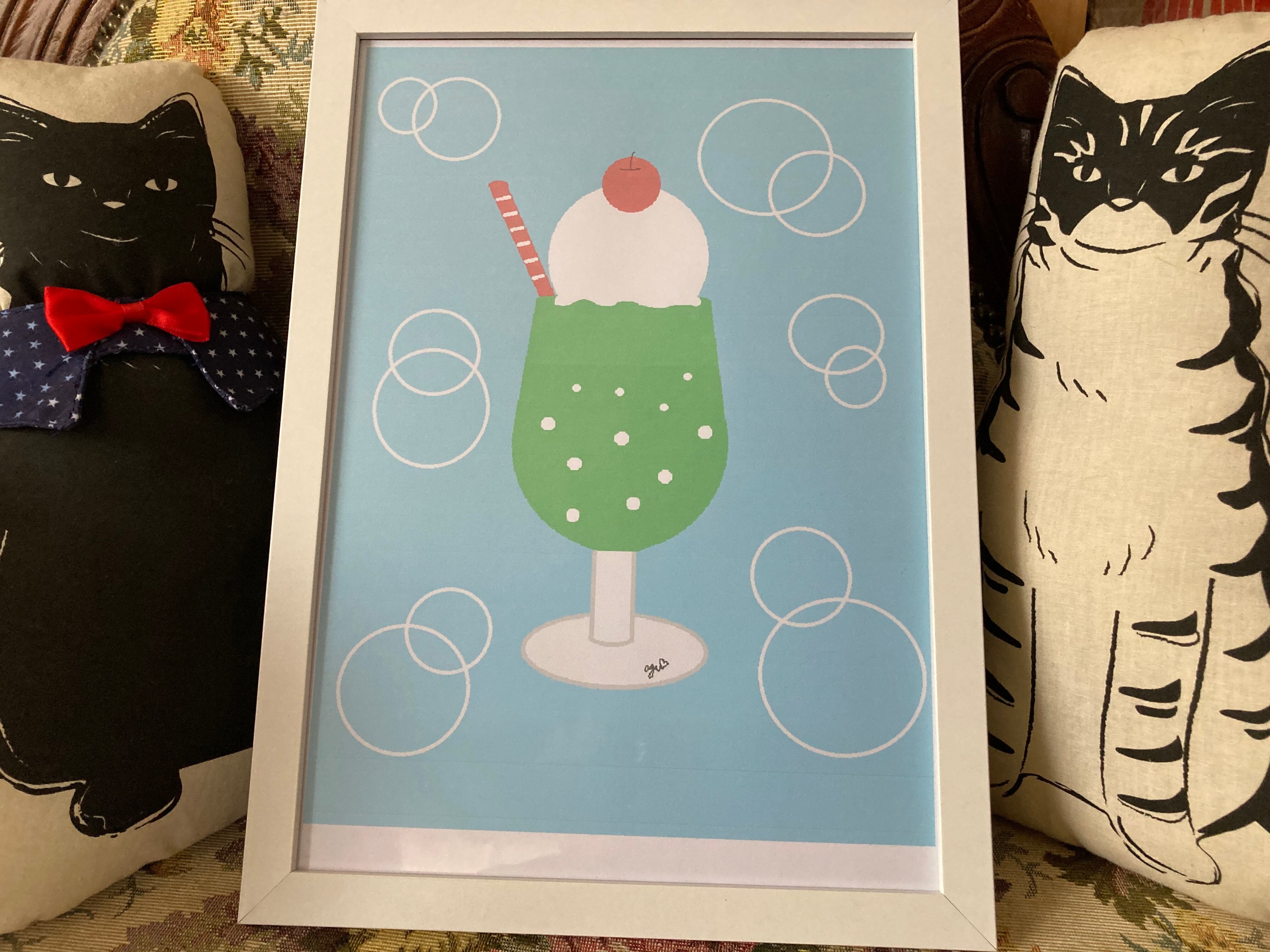 ○ペットをモデルにしたオリジナル猫のキャラクター黒猫のくろにゃをはじめ、なかまたちであるくろにゃんずのフェイスイラストをA4サイズに印刷しポスターにしました♪
